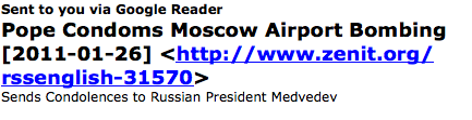 Bloggers have often suspected that people cannot write an article about the Pope without mentioning condoms. It seems that we are right. This came up in Luke Coppen's RSS feed: