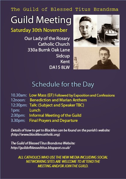 Just a reminder of the meeting of the Guild of Blessed Titus Brandsma on Saturday 30 November at Blackfen. Do come along if you can - it is great to meet fellow bloggers (and tweeters) face-to-face. There is plenty of time to chat over lunch.