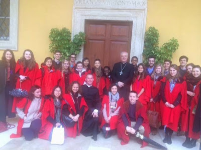 While in Rome, the students were given a tour of the Congregation for the Doctrine of the Faith by one of the priest officials there, who is himself an alumnus of St Andrews. He too is a fine young priest (remember that I am getting older!) and works hard at what is sometimes a thankless task in the Curia (not a job I would want for all the tea in China) for the love of God "et pro felici statu sanctae Romanae ecclesiae."